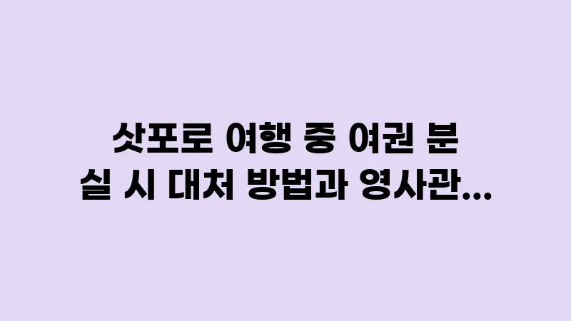 삿포로 여행 중 여권 분실 시 대처 방법을 단계별로 안내합니다. 분실 신고 절차, 총영사관 연락처, 여행증명서 발급 및 귀국하는 방법까지, 침착하게 위기를 극복할 수 있는 필수 행동 요령을 제공합니다. , 이어서