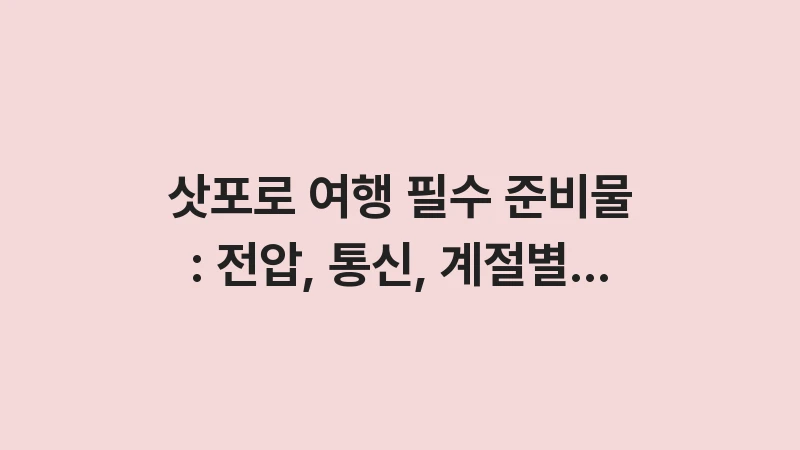 삿포로 여행 필수 준비물을 완벽 체크리스트로 정리합니다. 전압/어댑터 준비부터 유심/이심/포켓와이파이 비교, 계절별 옷차림과 방한 용품까지, 여행자가 놓치지 말아야 할 모든 필수품을 알려드립니다. , 이어서