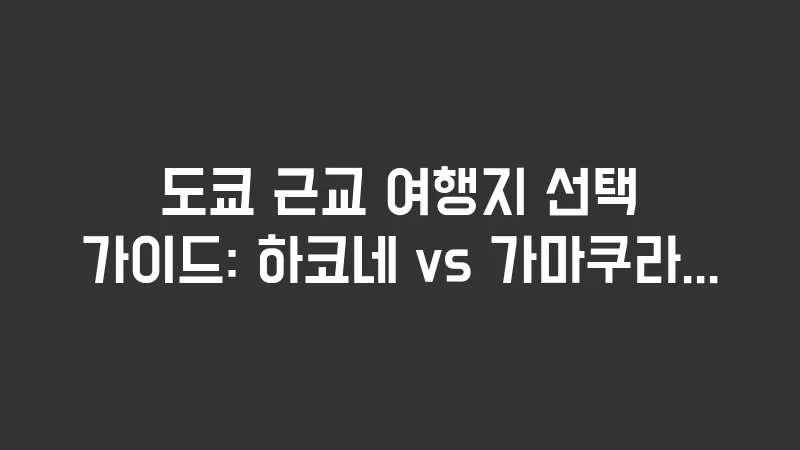 도쿄 근교 여행지 선택, 하코네, 가마쿠라, 닛코, 요코하마 중 내 여행 스타일에 맞는 곳은? 예산, 소요 시간, 테마별 완벽 비교 가이드. , 이어서