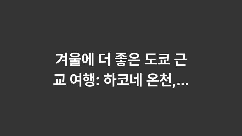 도쿄 근교 여행, 겨울철 하코네 온천과 후지산 설경을 하루 만에 즐기는 완벽한 당일치기 코스부터 교통 정보까지 총정리합니다. , 이어서