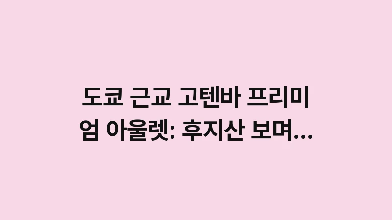 도쿄 근교 고텐바 프리미엄 아울렛, 후지산 뷰 쇼핑 노하우와 도쿄에서 가는 고속버스 예약 팁. 쇼핑과 후지산 조망을 동시에 즐기는 완벽 가이드. , 이어서