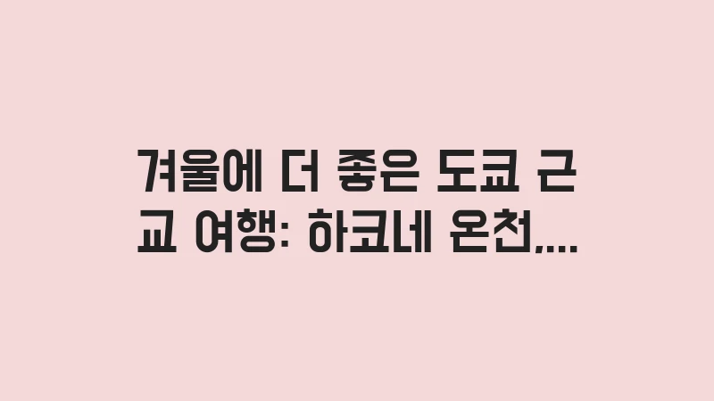 도쿄 근교 여행, 겨울철 하코네 온천과 후지산 설경을 하루 만에 즐기는 완벽한 당일치기 코스부터 교통 정보까지 총정리합니다. , 이어서