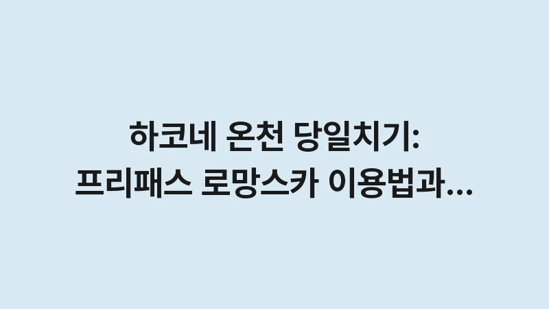 하코네 온천 당일치기를 완벽하게 즐기는 방법! 하코네 프리패스 구매 팁부터 로망스카 예약 명당, 오와쿠다니 검은달걀 시식까지 실패 없는 하루 코스를 상세히 안내해 드립니다. , 이어서