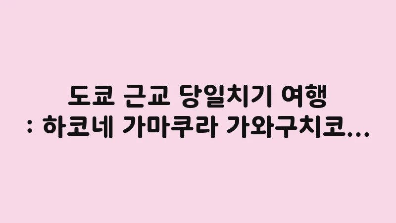 도쿄 근교 당일치기 여행을 계획 중이신가요? 하코네 온천, 가마쿠라 슬램덩크 명소, 후지산 뷰 가와구치코까지 주요 코스의 특징과 소요 시간, 이동 방법을 완벽하게 비교 분석해 드립니다. , 이어서