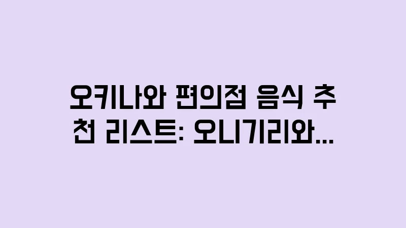 이 글은오키나와 편의점 음식 추천 리스트를 중심으로, 여행객들이 반드시 먹어야 할 포크오니기리의 비밀, 오키나와한정판 맥주와 최고의 궁합을랑하는 안주 조합, 그리고편의점음식으로가성비를 극대화하는 노하우를 상세히 알려드립니다. 이 가이드와 함께라면편의점쇼핑도 훌륭한 미식 투어가 될 것입니다.