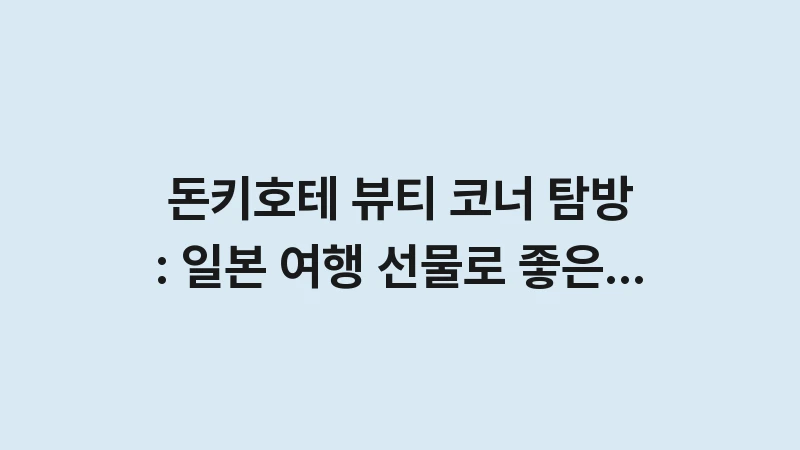 돈키호테 뷰티 코너는 삿포로 여행 선물과 개인 힐링템을 가장 풍성하고 합리적으로 구매할 수 있는 공간입니다. 이 글에서 제시된 마스크팩, 화장솜 등 필수템 리스트와 쇼핑 팁을 활용하여, 당신의 뷰티 쇼핑을 완벽하게 마무리하시기를 바랍니다.