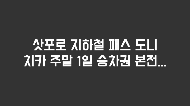 ➡️ 삿포로 시내 교통수단 완전 정복: 지하철 패스와 교통카드 활용 팁