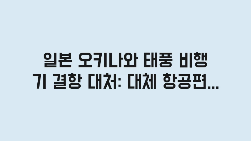 일본 오키나와 태풍 비행기 결항 대처법을 숙지하여, 예측 불가능한연재해 속에서도 당신의 여행을 통제할 수 있는 힘을 가지세요.