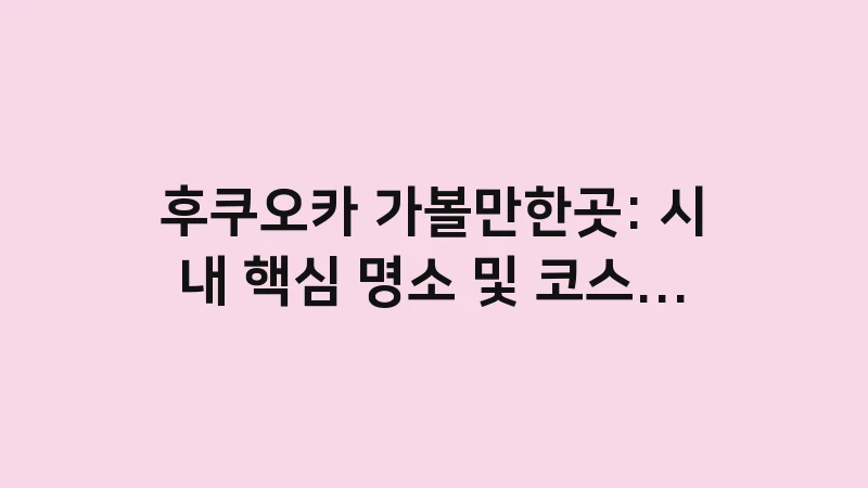 🏠 후쿠오카 가볼만한곳 핵심 관리 가이드