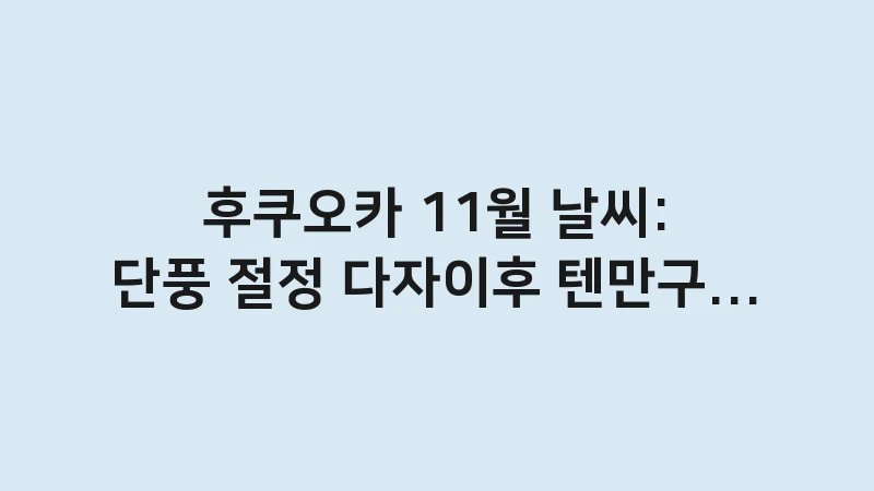 고지 문구: 본 글은 2025년 12월 기준으로 작성되었으며, 후쿠오카의 평균적인 11월 기상 데이터를 바탕으로 합니다. 단풍 시기나 기온은 해마다 미세하게 달라질 수 있으니 여행 전 일본 단풍 지도(Momiji map)와 실시간 일기예보를 참고하시기 바랍니다.