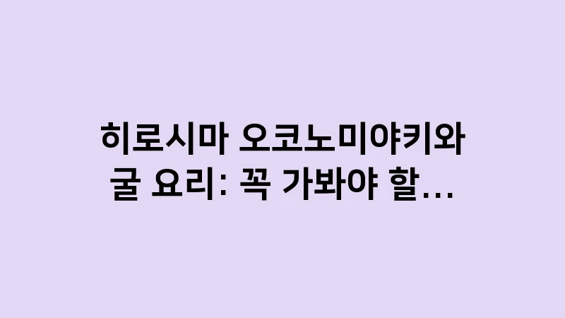 히로시마 오코노미야키와 굴 요리: 꼭 가봐야 할 정통 맛집 리스트