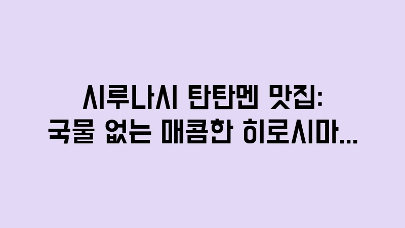 시루나시 탄탄멘 맛집: 국물 없는 매콤한 히로시마 스타일 탄탄면