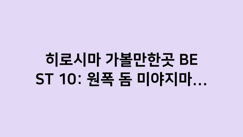 🏠 히로시마 가볼만한곳 핵심 관리 가이드