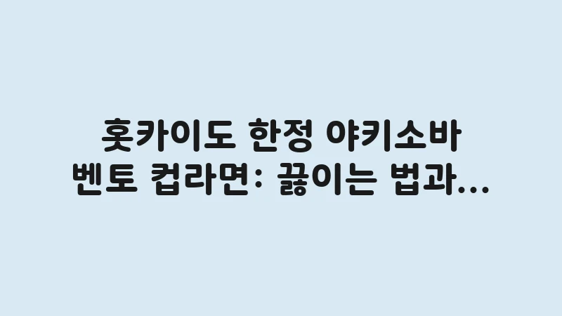 홋카이도 한정 야키소바 벤토 컵라면은 단순한 컵라면을 넘어, 홋카이도의 식문화를 체험하고 여행을 기념하는 특별한 아이템입니다. 올바른 끓이는 법을 숙지하여 볶음면과 따뜻한 국물을 동시에 즐기는 이 독특한 경험을 놓치지 마세요.