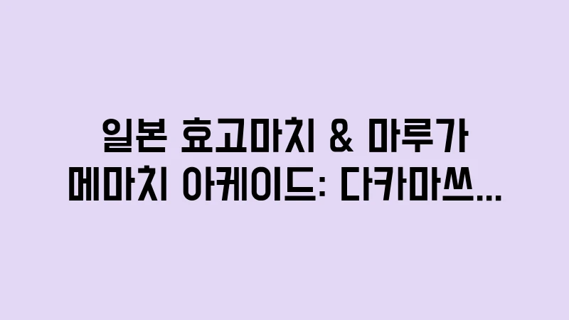 🏠 효고마치 마루가메마치 핵심 관리 가이드