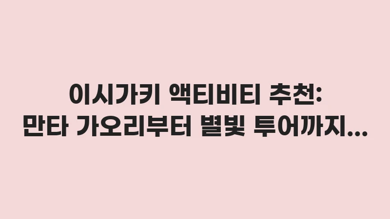 하지만 수많은 업체와 상품 중에서 무엇을 골라야 할지 고민되시죠? “혹시 말이 안 통하면 어쩌지?”, “안전할까?” 하는 걱정도 드실 겁니다. 이 글에서는 제가 직접 발로 뛰며 체험하고 검증한 이시가키 액티비티 추천 리스트를 공개합니다. 초보자도 안심하고 즐길 수 있는 프로그램부터 인생샷을 남길 수 있는 히든 스팟까지 낱낱이 파헤쳐 드립니다.