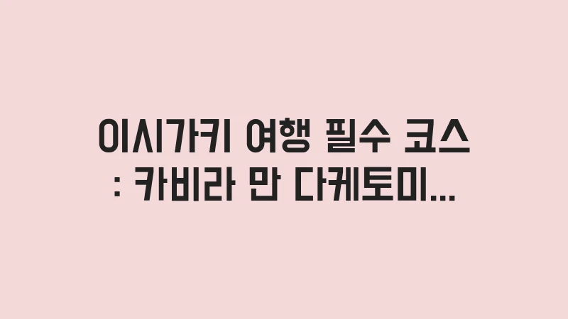 이시가키 여행 필수 코스로 꼽히는 카비라 만, 다케토미, 이리오모테 섬은 각기 다른 세 가지 색깔의 매력을 가지고 있습니다. 정적인 아름다움부터 동적인 활력까지 모두 갖춘 이 코스들은 여러분의 여행을 더욱 다채롭게 만들어 줄 것입니다. 맑은 바다와 전통의 숨결, 그리고 원시의 자연이 어우러진 이 여정을 통해 일상의 에너지를 완벽하게 재충전해 보시기 바랍니다. 계획을 잘 세워 각 섬이 주는 고유한 감동을 하나도 놓치지 않고 가슴속에 담아오시길 응원하겠습니다.