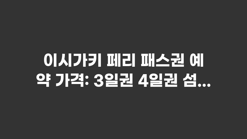 이시가키 페리 패스권 예약 가격: 3일권 4일권 섬 호핑 필수 준비물