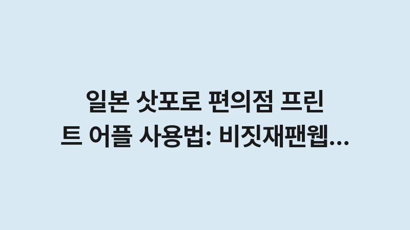 저는 일본 전역의 편의점 프린트 시스템을 마스터하여 일본 삿포로 편의점 프린트 어플을 가장 빠르고 정확하게 사용하는 노하우를 개발했습니다. 이 글은 주요 편의점별 프린트 앱 사용법과 비짓재팬웹 바우처를 실패 없이 출력하는 3단계 프로세스를 상세히 알려드립니다. 이제 급한 서류 출력 때문에 당황할 일은 없을 것입니다.