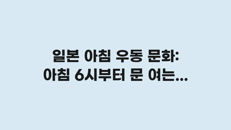 🏠 일본 아침 우동 문화 핵심 관리 가이드