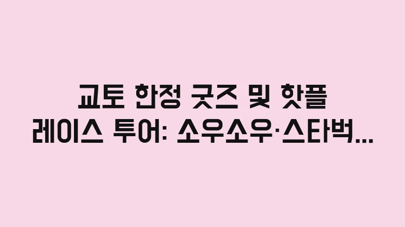 교토 한정 굿즈 및 핫플레이스 투어는 교토의 전통과 현대적인 팝 컬처가 만나는 지점을 탐험하는 흥미로운 과정입니다. 소우소우의 텍스타일, 스타벅스의 다다미, 산리오의 귀여움 속에 숨겨진 교토만의 아이덴티티를 직접 경험해 보세요. 여러분의 캐리어가 교토에서만 만날 수 있는 보물들로 가득 차길 바랍니다.