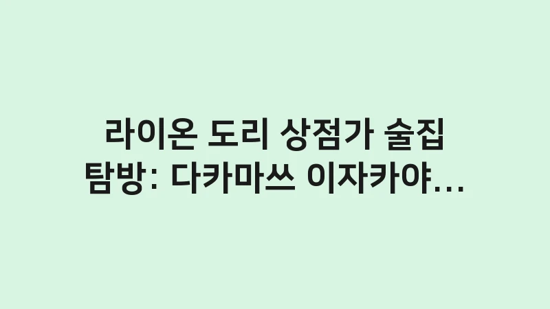 이곳은 현지 직장인들이 퇴근 후 스트레스를 푸는 사랑방이자, 여행자들에게는 다카마쓰의 리얼한 로컬 문화를 체험할 수 있는 최고의 장소입니다. 10년 넘게 일본 이자카야 문화를 연구해온 제가, 라이온 도리에서 절대 놓쳐서는 안 될 맛집들과 스마트하게 주문하는 비법을 아낌없이 공개합니다.