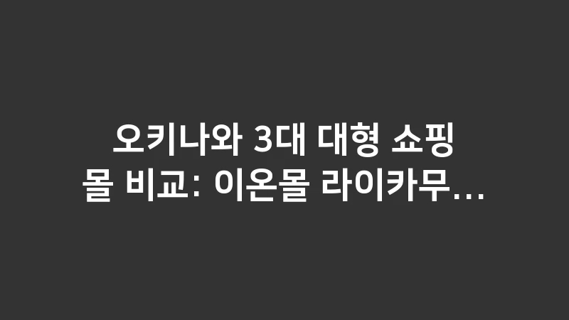 세 쇼핑몰 모두 훌륭한 오키나와 3대 대형 쇼핑몰이지만, 당신의 여행 스타일에 맞는 최적의 동선과 테마를 정하는 것이 가장 중요합니다.