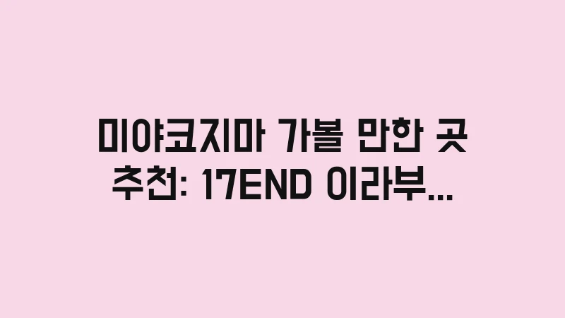 미야코지마 가볼 만한 곳들은 각각의 개성이 뚜렷하여 일주일 내내 머물러도 지루하지 않습니다. 17END의 투명함부터 이라부 대교의 해방감까지, 이번 가이드가 여러분의 여행 가방에 설렘을 가득 채워드렸기를 바랍니다. 자연을 보호하며 여행하는 미덕을 잊지 마세요!