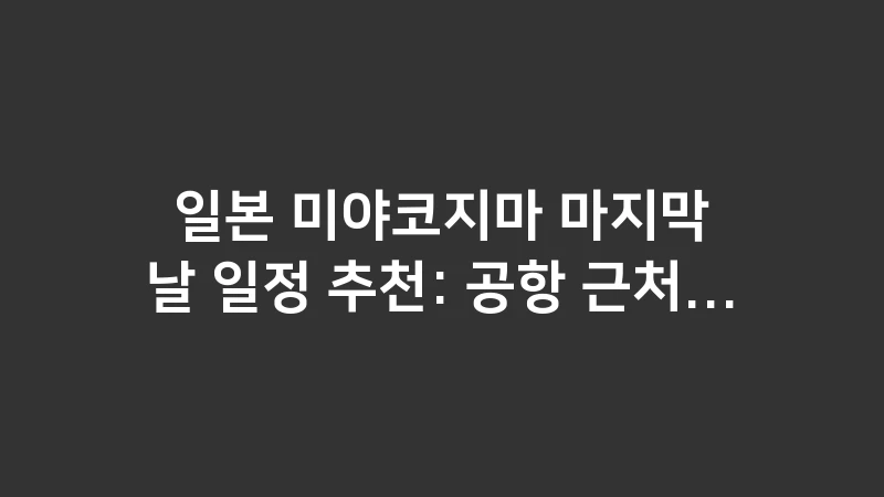 미야코지마 여행을 ‘유종의 미’로 장식하기 위해서는 공항과의 거리를 최우선으로 고려한 지능형 동선이 필요합니다. 10년 차 여행 콘텐츠 전략가의 안목으로, 렌터카 반납부터 비행기 탑승 직전까지 1분 1초를 알차게 활용할 수 있는 최적의 ‘라스트 미야코’ 코스를 지금부터 공개하겠습니다. 떠나는 순간까지 당신의 카메라는 쉴 틈이 없을 것입니다.