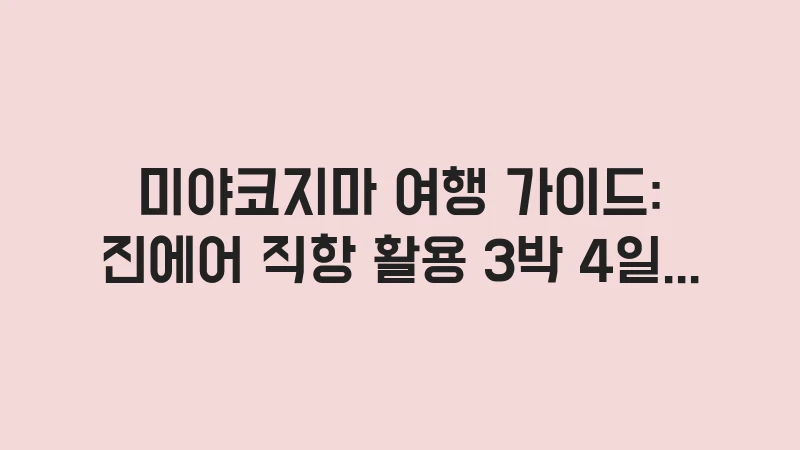 최근 일본의 숨은 보석이라 불리는 미야코지마가 진에어 직항 노선 개통으로 큰 주목을 받고 있습니다. 오키나와 본섬과는 또 다른 ‘미야코 블루’의 매력을 느끼고 싶지만, 짧은 3박 4일 일정 동안 어떻게 동선을 짜야 할지 막막해하는 분들이 많습니다.