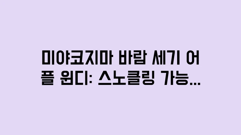 미야코지마 여행의 목적이 ‘스노클링’이나 ‘물놀이’라면, 아침에 눈 뜨자마자 날씨 어플에서 ‘해’ 그림을 찾는 것은 하수입니다. 햇빛이 쨍쨍해도 바람이 심하게 불면 바다는 거친 파도로 뒤집히고, 입수 자체가 금지될 수 있기 때문입니다. 반대로 비가 조금 오더라도 바람이 잔잔하면 바닷속은 평온해서 물놀이하기에 더할 나위 없이 좋습니다.