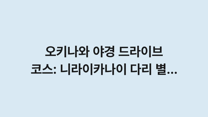 오키나와 야경 드라이브 코스 니라이카나이 다리 전문가인 제가 안전, 로맨틱, 별 구경의 세 가지 측면에서 완벽하게 분석한 드라이브 가이드를 공개합니다. 이 글은 당신의 오키나와 밤을 가장 안전하고 아름다운 경험으로 채워줄 것입니다.