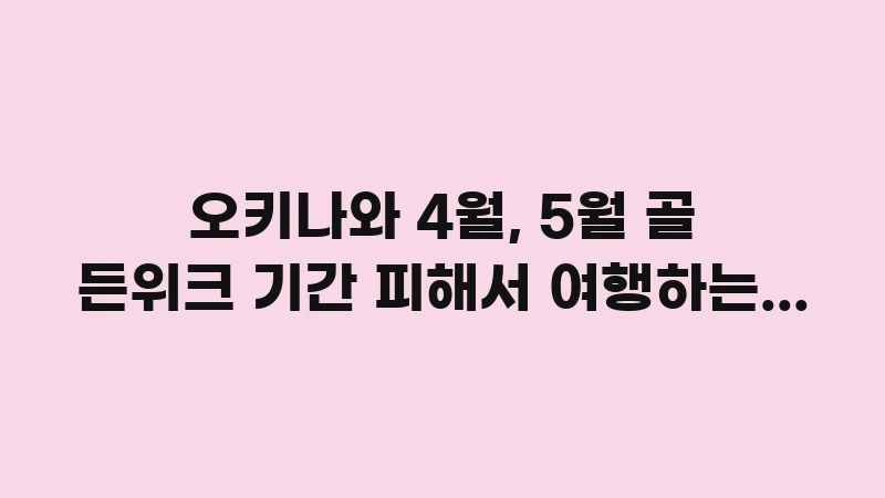 여행 전문가로서, 저는 골든위크의 극심한 혼잡을 피해 쾌적함을 유지하고, 이 시기에 여행해야만 한다면 오키나와 4월, 5월 골든위크 기간 피해서 여행하는 옷차림 및 팁을 어떻게 적용해야 하는지에 대한 모든 노하우를 알려드립니다. 당신의 오키나와 여행을 최적의 조건에서 즐길 수 있도록 완벽하게 대비하세요.
