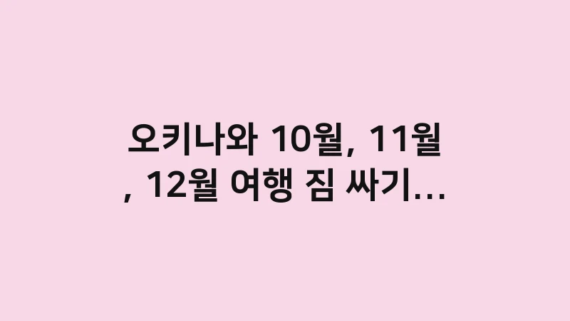 고지 문구: 본 글은 2025년 12월 기준으로 작성되었으며, 미니멀리스트 주부의 경험과 짐 싸기 효율 분석을 바탕으로 합니다. 오키나와 10월 11월 12월 짐 싸기 품목은 개인의 여행 스타일이나 숙소 환경에 따라 달라질 수 있습니다. 중요한 물품은 반드시 개인적으로 확인하시기 바랍니다.