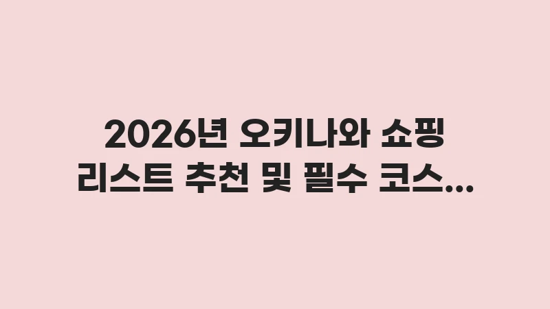 2026년 오키나와 쇼핑 리스트 추천 및 필수 코스 총정리: 돈키호테부터 백화점까지