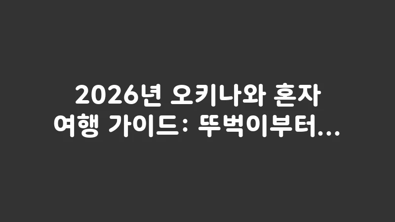 10년 차 여행 전문가이자 혼행(혼자 여행)의 고수인 제가, 수많은 데이터를 분석하고 현지 경험을 집대성하여 당신의 오키나와 혼자 여행이 첫 단추부터 완벽하게 꿰어질 수 있도록 모든 핵심 정보를 A부터 Z까지, 가장 현실적으로 비교하고 정리해 드립니다.