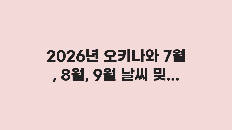 에메랄드빛 바다와 새하얀 모래사장은 당신을 부르지만, 그 전에 챙겨야 할 필수 정보가 있습니다. 바로 오키나와 7월, 8월, 9월 날씨에 대한 완벽한 이해와 그에 맞는 옷차림 준비입니다.