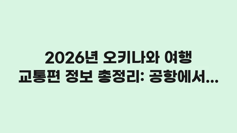 2026년 오키나와 여행 교통편 정보를 완벽하게 숙지하는 것은 성공적인 여행의 첫걸음입니다. 나하 시내에서는 유이레일, 중/북부 이동 시에는 렌트카가 가장 효율적이라는 점을 기억하세요. 이 글이 제시하는 모든 교통편 정보를 통해 당신의 오키나와 여행이 시간 낭비 없이 완벽하게 시작되기를 바랍니다.