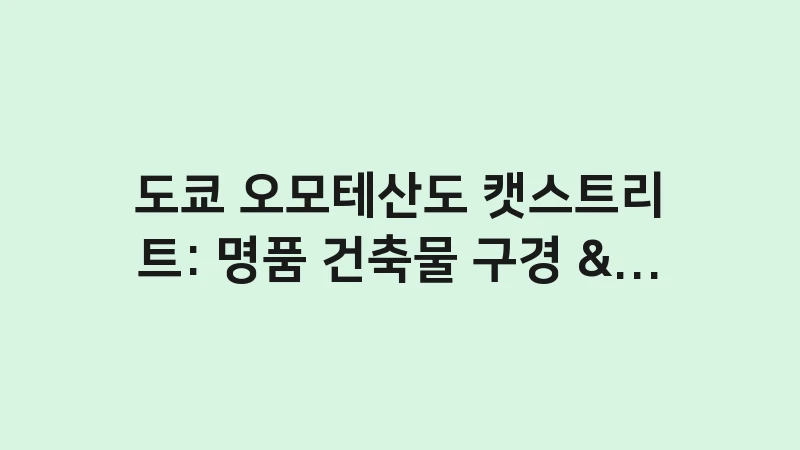 도쿄 오모테산도 캣스트리트는 당신의 여행에 최신 트렌드와 예술적 영감을 동시에 선사할 것입니다. 명품 건축물 순례를 통해 지적인 만족감을 얻고, 캣스트리트 뒷골목에서 당신만의 힙한 아이템을 발견하며, 도쿄에서 가장 세련된 하루를 완성해 보세요. 이 모든 정보를 포괄하는 전체 핵심 가이드에서 로드맵을 확인해 보세요.