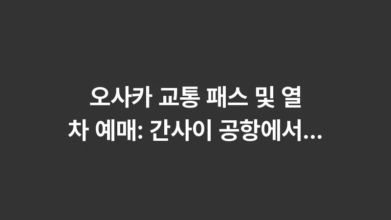 오사카 교통 패스 및 열차 예매 정보를 2025년 최신 기준으로 완벽 정리했습니다. 간사이 공항에서 시내 이동 방법부터 라피트, 하루카, 각종 패스 활용법까지 이 가이드 하나로 종결하세요. , 이어서
