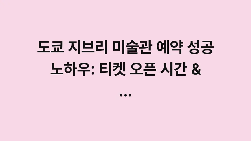도쿄 지브리 미술관 예약 성공 노하우: 티켓 오픈 시간 & 로손 편의점 결제 팁 2025년 11월 25일 작성자: admin 미야자키 하야오의 꿈과 마법, 감성이 살아 숨 쉬는 도쿄 지브리 미술관 예약은 도쿄 여행을 계획하는 모든 애니메이션 팬들의 가장 큰 숙제입니다. 이 작은 미술관은 하루… … 더 읽기 , 이어서