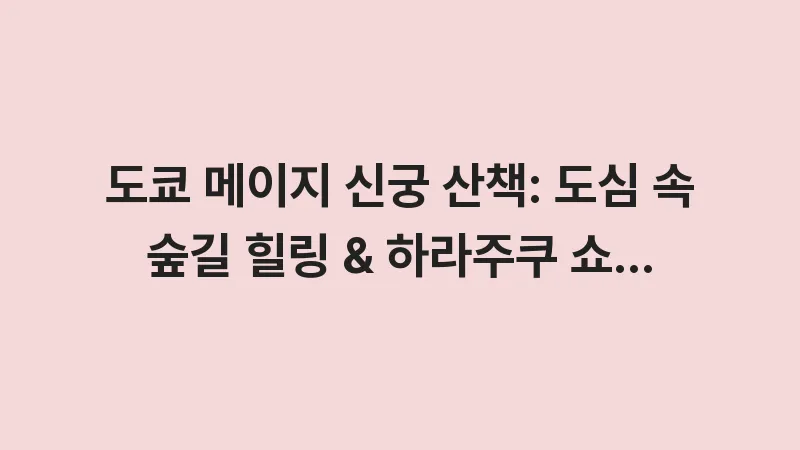도쿄 메이지 신궁 산책: 도심 속 숲길 힐링 & 하라주쿠 쇼핑 연계 코스 2025년 11월 25일 작성자: admin 도쿄의 가장 트렌디하고 활기 넘치는 하라주쿠역 바로 옆에, 마치 다른 세계처럼 고요하고 장엄한 숲이 펼쳐져 있습니다. 바로 도쿄 메이지 신궁입니다. 이곳은 일본 근대화의 아버지인 메이지… … 더 읽기 , 이어서