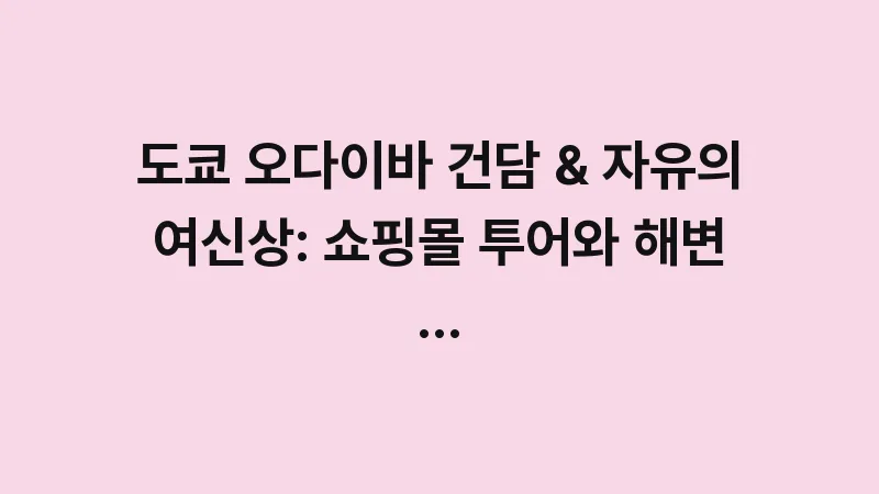 도쿄 오다이바 건담 & 자유의 여신상: 쇼핑몰 투어와 해변 공원 산책 코스 2025년 11월 25일 작성자: admin 도쿄의 미래 도시를 상징하는 오다이바는 여유로운 해변 공원, 거대한 쇼핑몰, 그리고 독특한 랜드마크인 실물 크기 건담과 자유의 여신상이 공존하는 특별한 공간입니다. 복잡한 도심 관광에 지쳤다면,… … 더 읽기 , 이어서