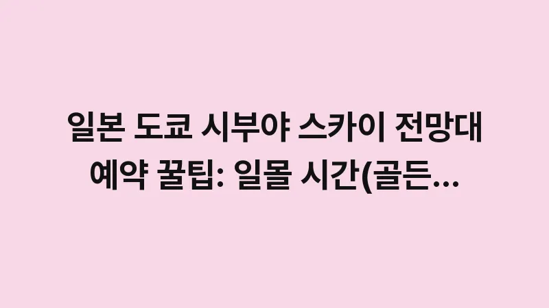 일본 도쿄 시부야 스카이 전망대 예약 꿀팁: 일몰 시간(골든아워) 인생샷 건지는 법 2025년 11월 25일 작성자: admin 도쿄에서 가장 트렌디하고 개방적인 뷰를 자랑하는 시부야 스카이 전망대 예약은 이제 도쿄 여행의 가장 중요한 관문이 되었습니다. 옥상 헬리포트에서 시부야 스크램블 교차로와 도쿄 타워, 스카이트리까지… … 더 읽기 , 이어서