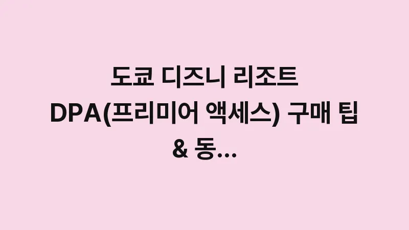 도쿄 디즈니 리조트 DPA(프리미어 액세스) 구매 팁 & 동선 짜기 전략 2025년 11월 25일 작성자: admin 도쿄 디즈니 리조트(랜드/씨)는 이제 DPA(디즈니 프리미어 액세스)를 활용하지 않고는 하루 동안 주요 어트랙션을 제대로 즐길 수 없는 곳이 되었습니다. DPA는 유료이지만, 하루 종일 낭비되는 대기… … 더 읽기 , 이어서