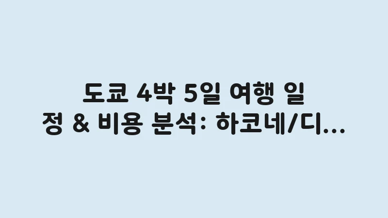도쿄 4박 5일 여행의 핵심인 하코네, 디즈니 근교 포함 여유로운 일정을 설계하고, 광역 교통 패스 선택 기준과 예상 비용을 자세히 분석합니다. , 이어서