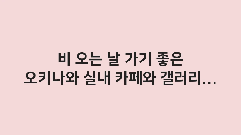 비 오는 날 오키나와 실내 카페를 선택할 때는 쾌적한 통창 뷰, 넓은 실내 공간, 그리고 편리한 주차 시설을 갖추었는지가 핵심입니다. 이 글은 당신의 오키나와 여행 중 궂은 날씨를 만나더라도, 계획에 차질 없이 낭만적인 시간을 보낼 수 있도록 완벽한 대안 명소들을 상세히 알려드립니다. 비 오는 날의 오키나와가 선사하는 고즈넉한 감성을 지금 바로 경험해 보세요.
