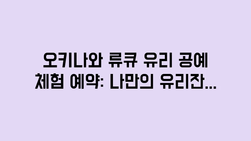 고지 문구: 본 글은 2025년 12월 기준으로 작성되었으며, 공예 체험 전문가의 경험과 분석을 바탕으로 류큐 유리 공예 체험 정보를 제공합니다. 체험 비용, 시간, 수령 정책은 공방의 규모와 사정에 따라 예고 없이 변동될 수 있습니다. 안전 관련 규정은 반드시 현지 강사의 지시에 따르시기 바랍니다.