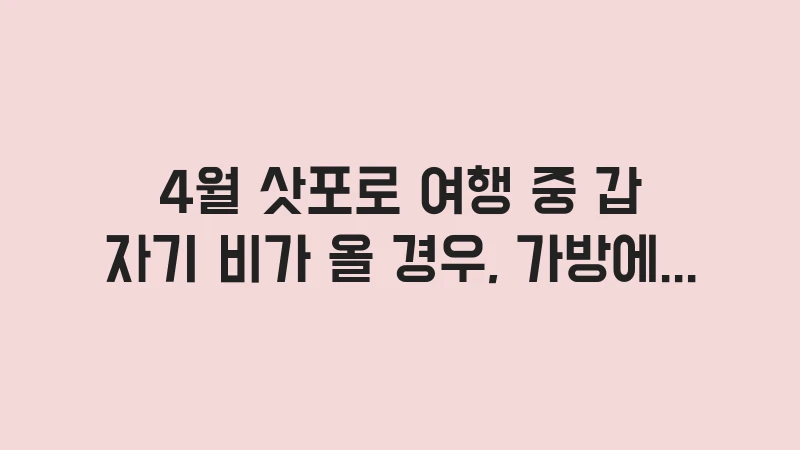 ✅ 교훈: 4월 삿포로 여행 중 갑자기 비가 올 경우, 우산으로는 신발과 가방의 안전을 확보하기 어렵습니다. F씨의 사례처럼, 방수 스프레이와 지퍼백은 4월의 변덕스러운 비로부터 당신의 짐과 컨디션을 지켜줄 수 있는 가장 실용적이고 간편한 해결책입니다.
