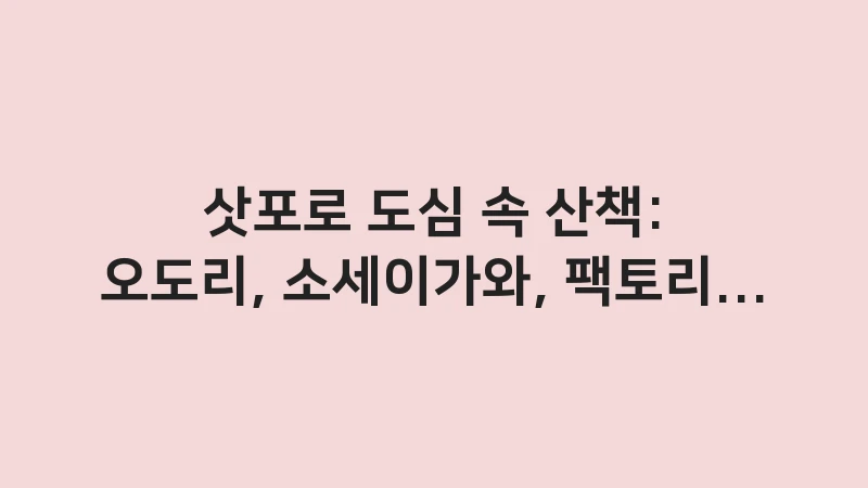 삿포로 도심 속 산책: 오도리, 소세이가와, 팩토리 사진 명소